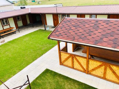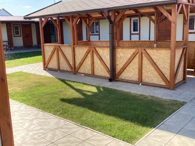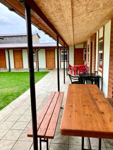 Благоустроенная территория, беседки, мануальная зона, газон, все чисто и аккуратно.