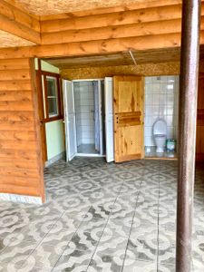Очень далёко от озера, сковороду в обиходе отсутствует под запретом хозяйки. Добирались целую ночь прибыли в 9 утра никто не встретил сказала некогда ваше заселение в 12 дня хотите оставляйте сумки в беседке и гуляйте.